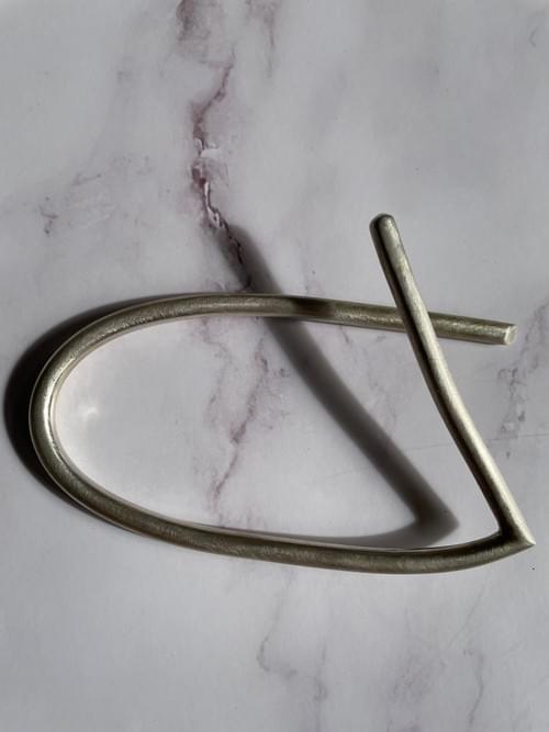 £399.00Heavyweight oval bangle, this is a statement piece of jewellery. It fits an average medium wrist but is designed to be a larger than normal size bangle. It stays on comfortably. It is a contemporary edgy piece whereby the "pointed" pieces of the bangle stand up away from the wrist. It is flexible so can fit closer if necessary. This is a Seconds piece. It has a very slight, hardly noticeable bend in it. RRP £399.00 when in perfect condition. It has a brushed matt finish.