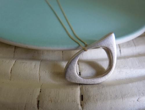 One Quirky Oval - it's all about You. Handcrafted silver pendant with a brushed matt polished finish. Hung on a 9ct yellow gold fine (0.5mm) diamond cut curb chain. Necklace length 16" Pendant 2.5 cm x 1.5 cm x 0.5cm deep. Solid sterling silver hallmarked by the Assay Office with the Maker's mark.